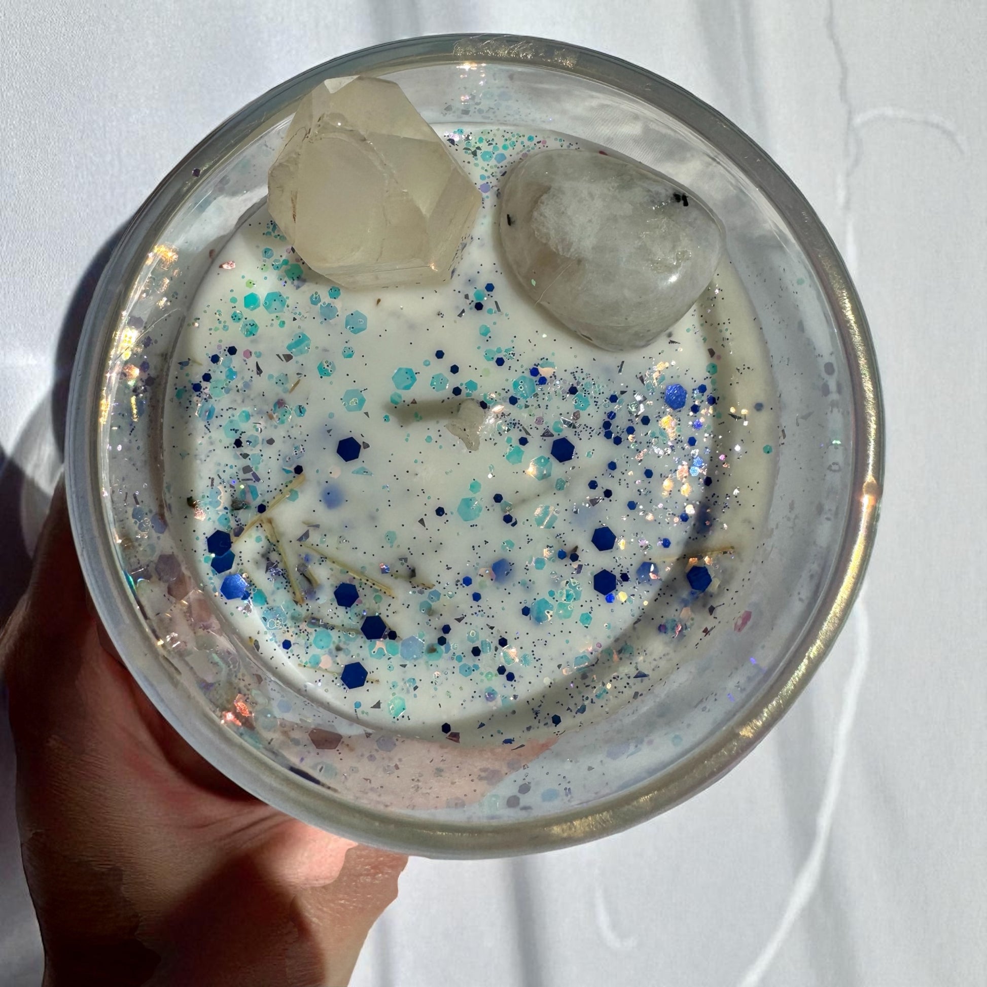 This candle is designed to be your companion as you navigate the changes and transformations in your life. It serves as a reminder that your angels are guiding and supporting you through every step of the journey. With the power of Clear Quartz, Rainbow Moonstone, Lemongrass, and Peppermint, you can release the old, embrace the new, and confidently step into your divine path.